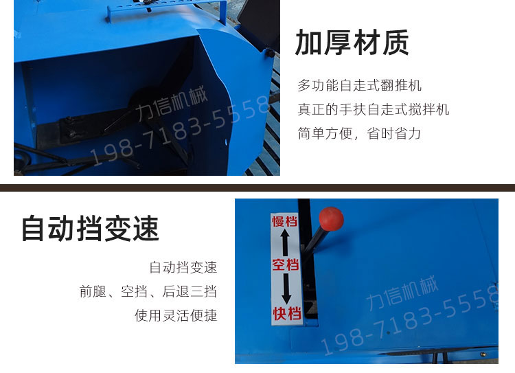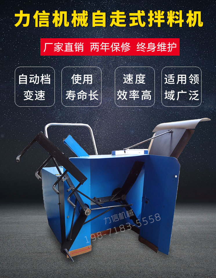 力信機(jī)械食用菌電動(dòng)拌料機(jī),新款自走式拌料機(jī)價(jià)格 木屑翻棧機(jī)食用菌機(jī)械廠家直銷.是國內(nèi)目前設(shè)計(jì)比較精巧可靠的拌料翻棧機(jī)械。它吸收了眾多拌料機(jī)械的優(yōu)點(diǎn),同時(shí),化繁為簡推陳出新,將機(jī)械的各種功能,集中在同一主機(jī)上。主傳動(dòng)、付傳動(dòng)、自走離合機(jī)構(gòu)以及主配重輪,都集中在一臺(tái)特殊設(shè)計(jì)的減速機(jī)上。是一款臥式拌料機(jī),自動(dòng)化程度高,操作時(shí)只需一人扶扶手把握方向即可,操作簡單省力。加寬自走輪、主甩輪采用整體鑄鋼配件,強(qiáng)度高。機(jī)架為整體框架式,前機(jī)殼為加厚鋼板無縫焊接,機(jī)子平衡靈活、進(jìn)退自如。工作時(shí)原料就地棧積好后,機(jī)器通過料耙送入喂料輪再通過離心風(fēng)輪加速拋出出料口,在經(jīng)過運(yùn)料的同時(shí)實(shí)現(xiàn)多次攪拌混合,使得原料攪拌更加均勻一致。