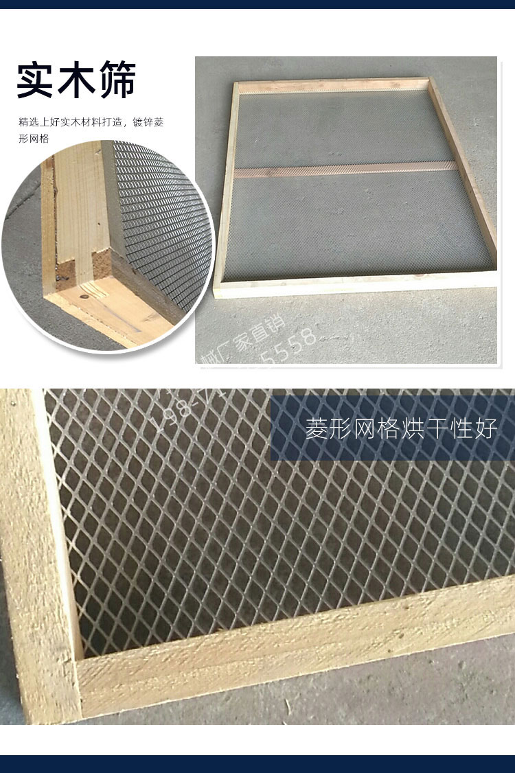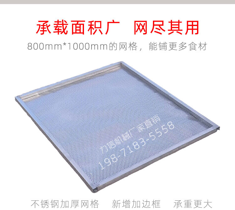 可根據(jù)客戶尺寸要求定制烘盤,特殊要求網(wǎng)盤底部可做加強(qiáng)筋,增加承重強(qiáng)度。四邊可采用不銹鋼方管貨木質(zhì)邊框。優(yōu)點為可定制任意尺寸,滿足客戶需求